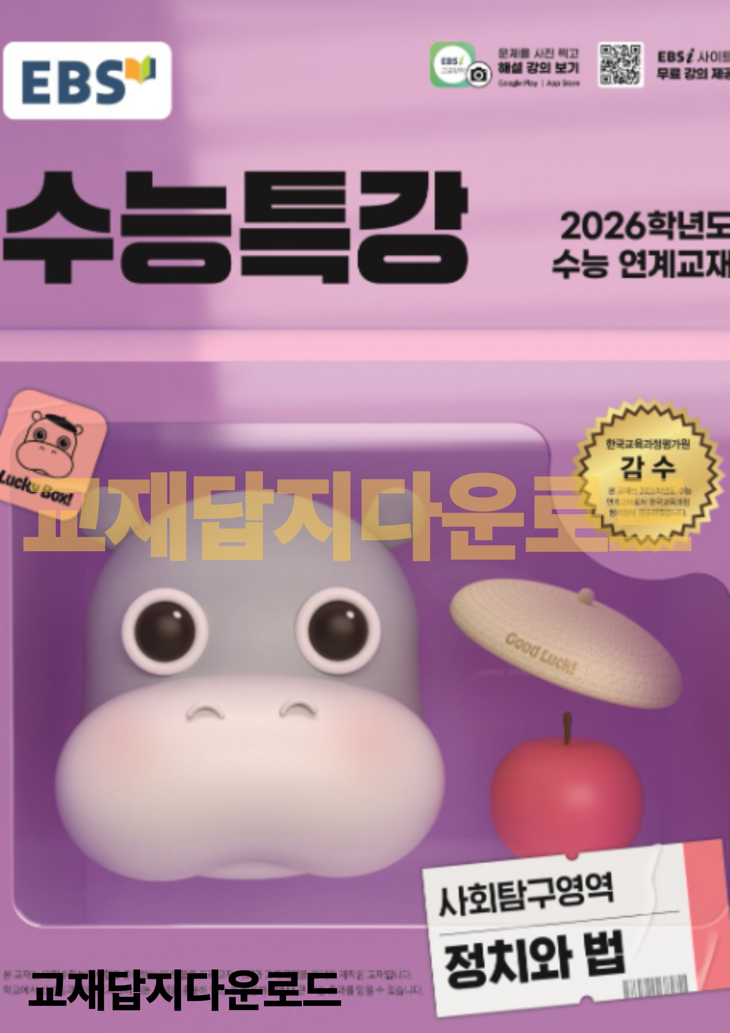 오늘은 EBS에서 출간한 2026학년도 수능 대비 『수능특강 사회탐구 정치와 법』 교재에 대한 간단한 소개와 함께, 해당 교재의 답지를 PDF로 다운로드할 수 있는 방법까지 자세히 안내드리겠습니다.