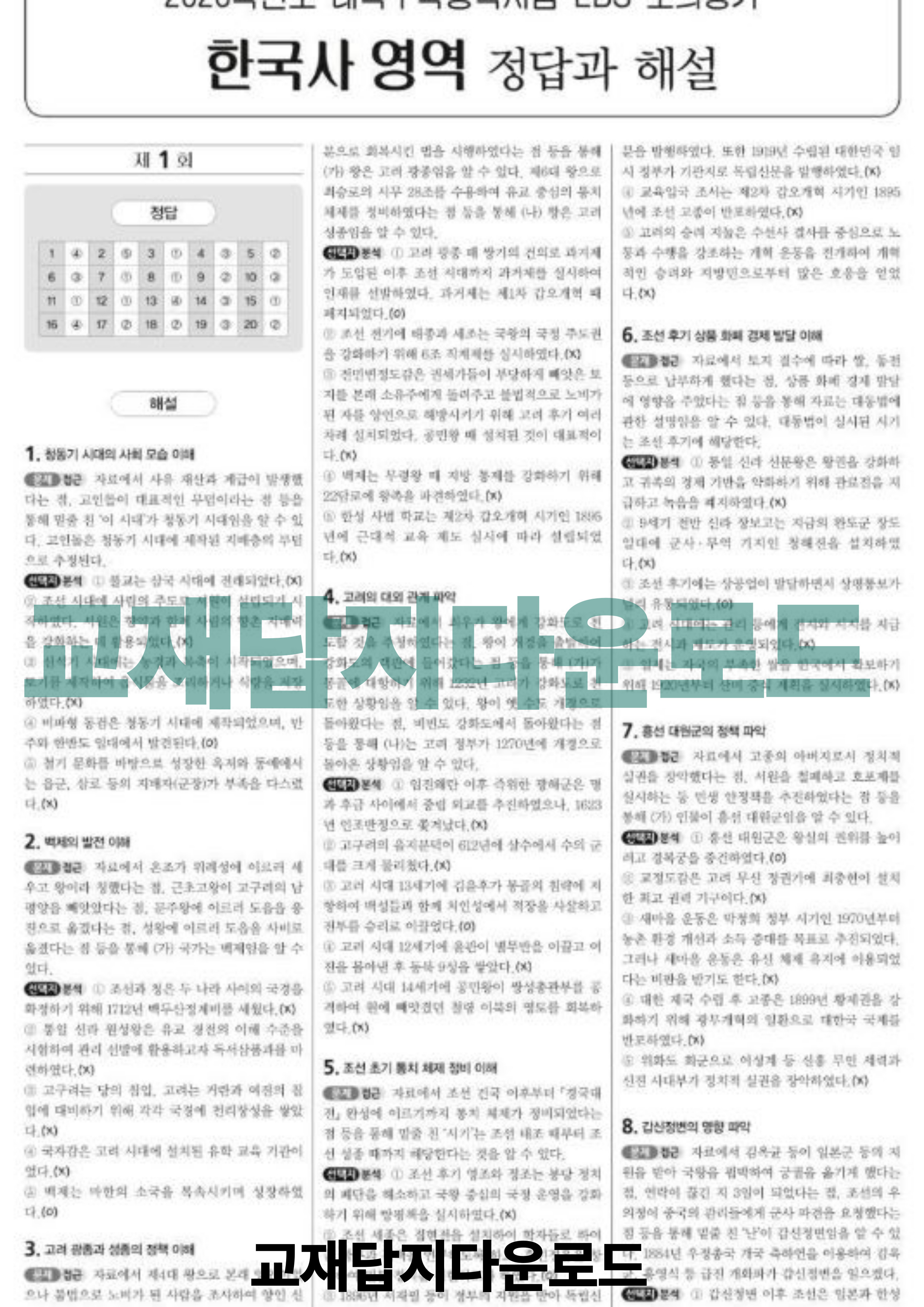 EBS 만점마무리 한국사 답지는 아래 링크를 통해 다운로드하실 수 있도록 안내드릴 예정입니다.
